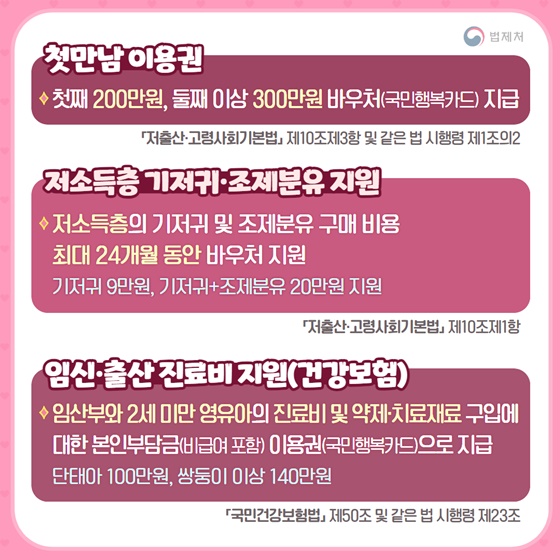 지원금액 : 첫째 아이 200만 원 둘째 이상 300만 원