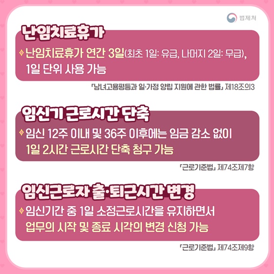 근로시간 단축: 임신 12주 이내 및 36주 이후 1일 2시간