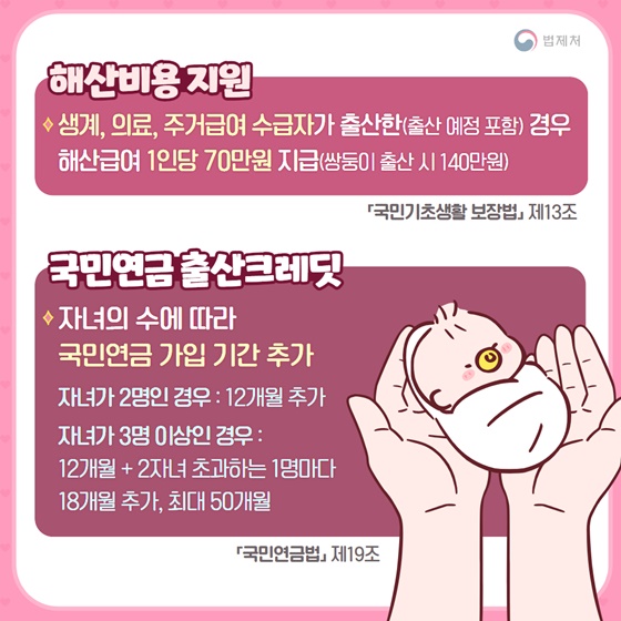 지원 금액: 기본 70만 원, 쌍둥이 140만 원